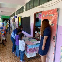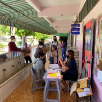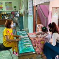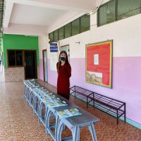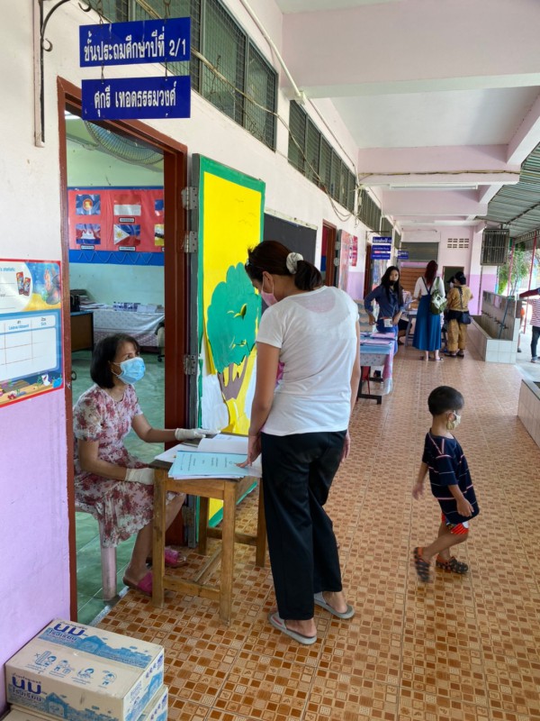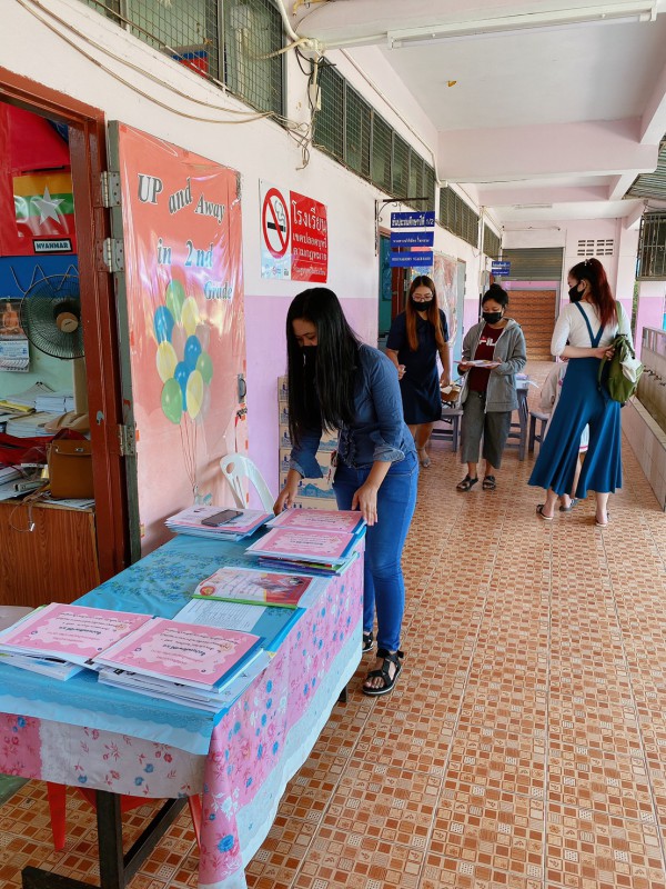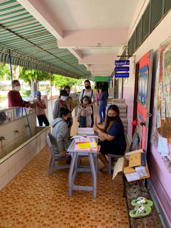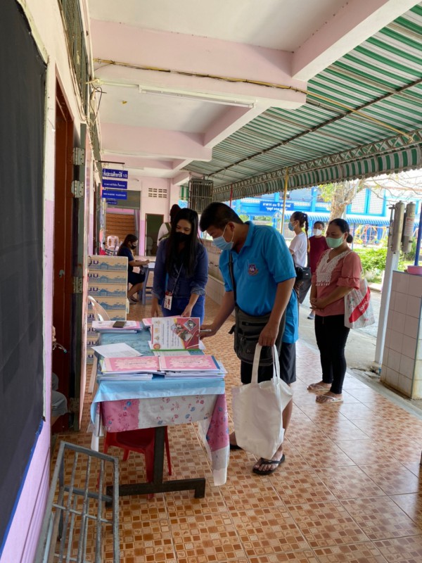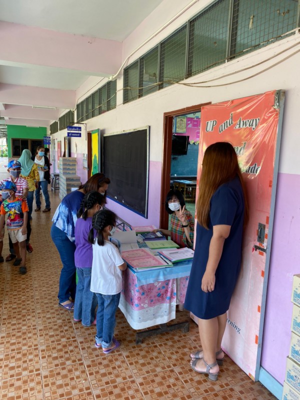 วันที่ 18 พ.ค. 63 นักเรียนมารับเอกสารบทเรียนสำเร็จพร้อมรับนม เพื่อนำกลับไปดื่มที่บ้านในช่วงเวลาในการเรียนออนไลน์ที่บ้าน ควบคู่กับการทำบทเรียนสำเร็จที่ได้รับจากครูประจำชั้นเป็นรานสัปดาห์ |